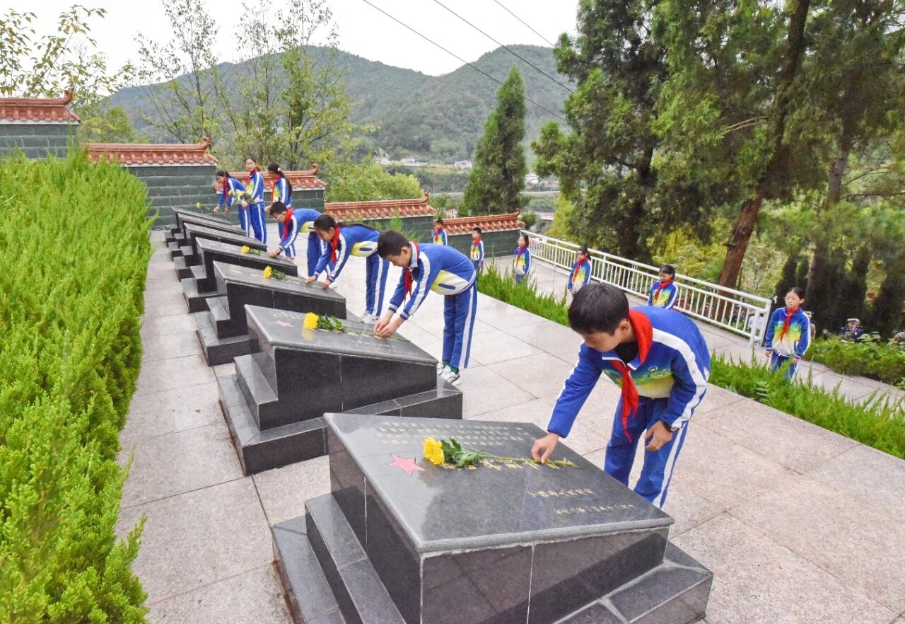 “英雄長眠垂不朽,萬古清名入史冊。”隨著深情舒緩的《獻(xiàn)花曲》奏響,6名禮兵邁著鏗鏘有力的步伐,抬起花籃穩(wěn)步走向烈士紀(jì)念碑,將承載著全縣人民哀思與敬仰的花籃整齊擺放于碑前。參與活動的領(lǐng)導(dǎo)代表全縣人民,緩步上前整理花籃緞帶,隨后帶領(lǐng)現(xiàn)場全體人員向革命先烈三鞠躬。鞠躬禮畢,大家手持白菊,依次緩步繞行紀(jì)念碑,向先烈敬獻(xiàn)菊花,并駐足瞻仰,追思先烈們英勇頑強、不怕犧牲、無私奉獻(xiàn)、忠誠為民的崇高精神。