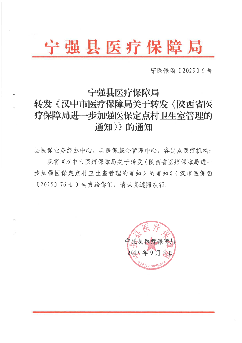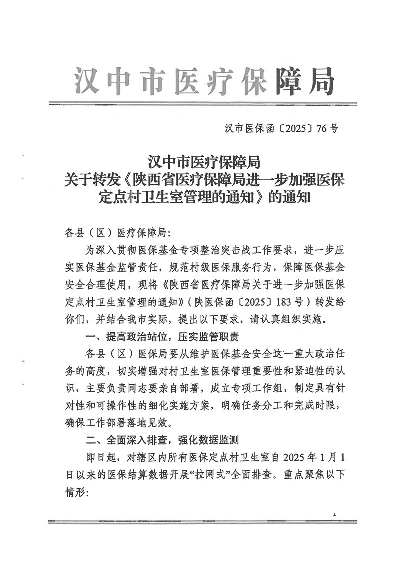 轉(zhuǎn)發(fā)《漢中市醫(yī)療保障局關(guān)于轉(zhuǎn)發(fā)〈陜西省醫(yī)療保障局進(jìn)一步加強(qiáng)醫(yī)保定點(diǎn)村衛(wèi)生室管理的通知〉》的通知