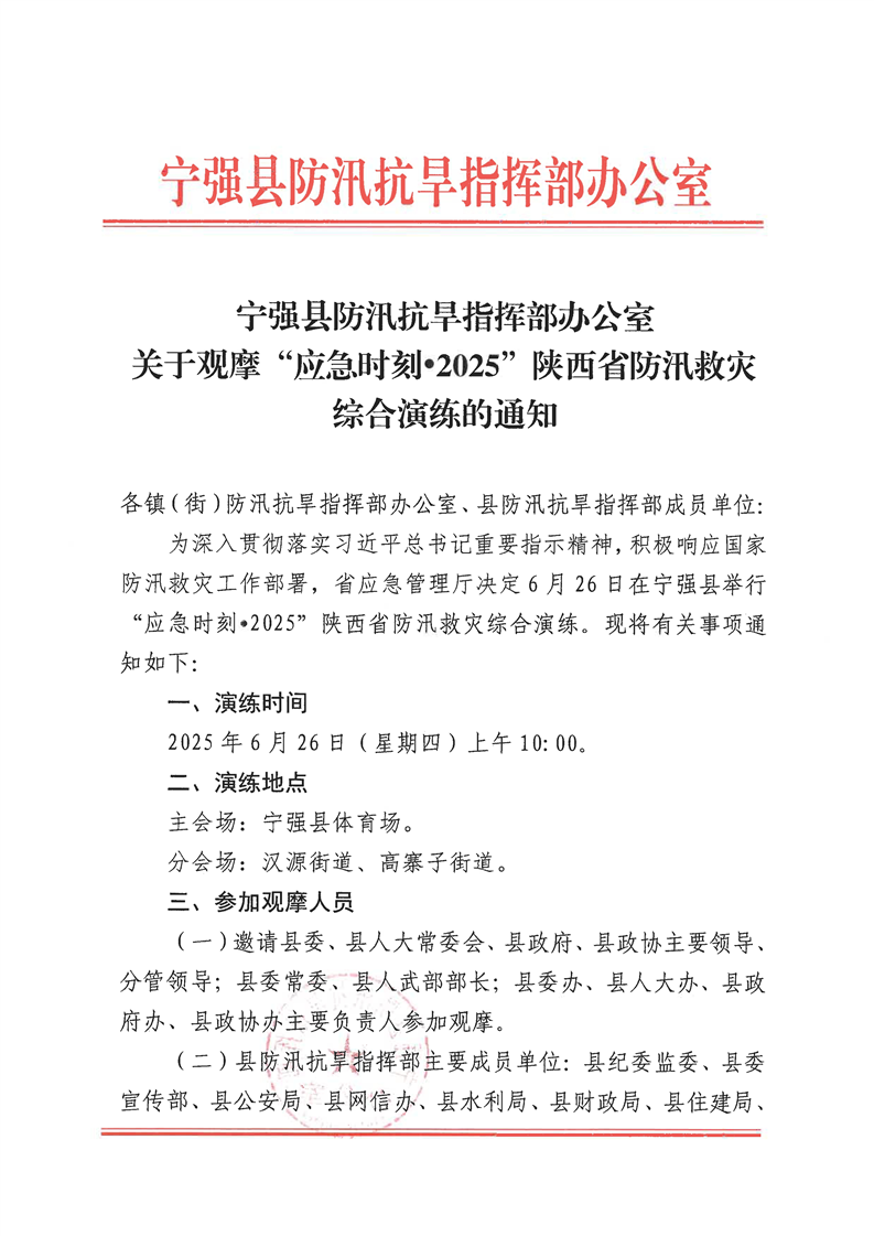 關(guān)于觀摩“應(yīng)急時(shí)刻·2025”陜西省防汛救災(zāi)綜合演練的通知