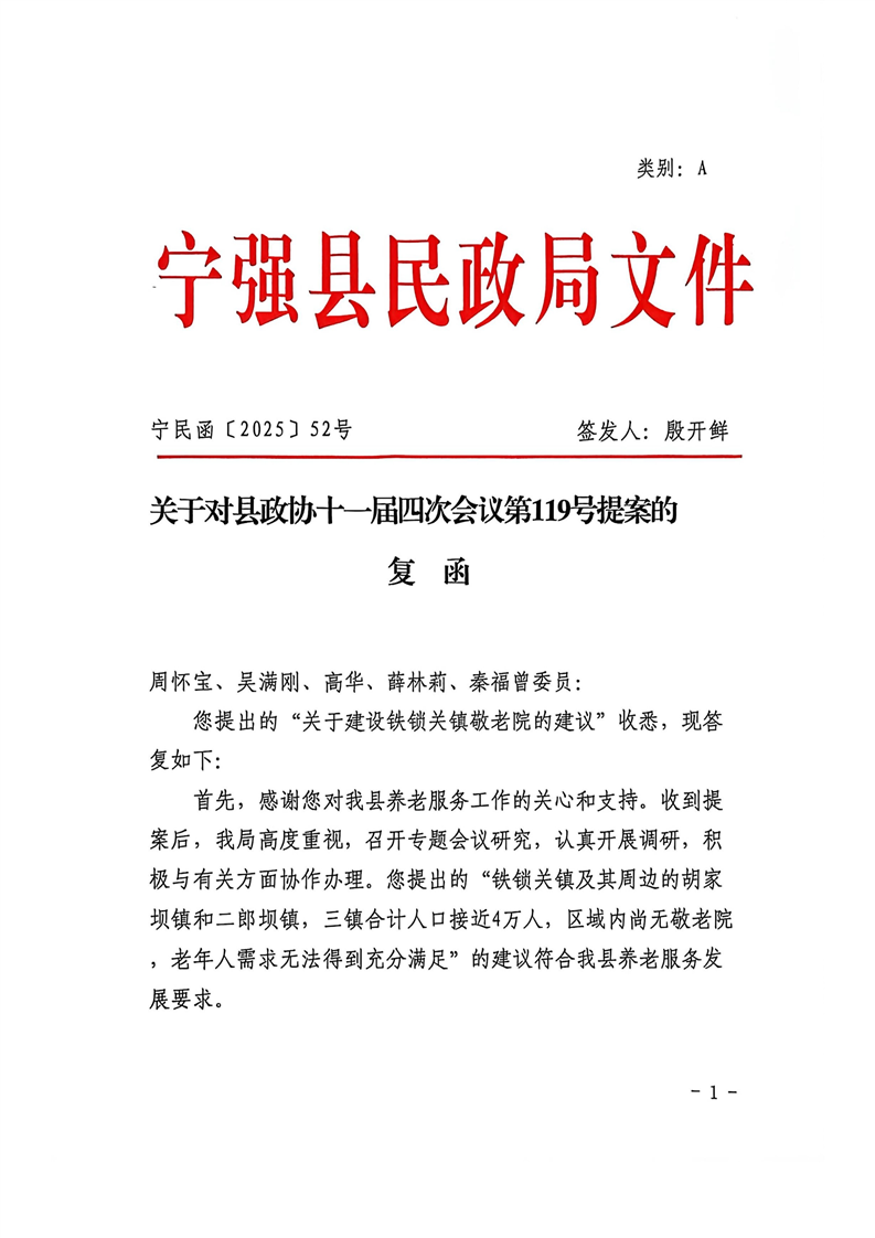 關(guān)于對縣政協(xié)十一屆四次會議第119號建議的復(fù)函