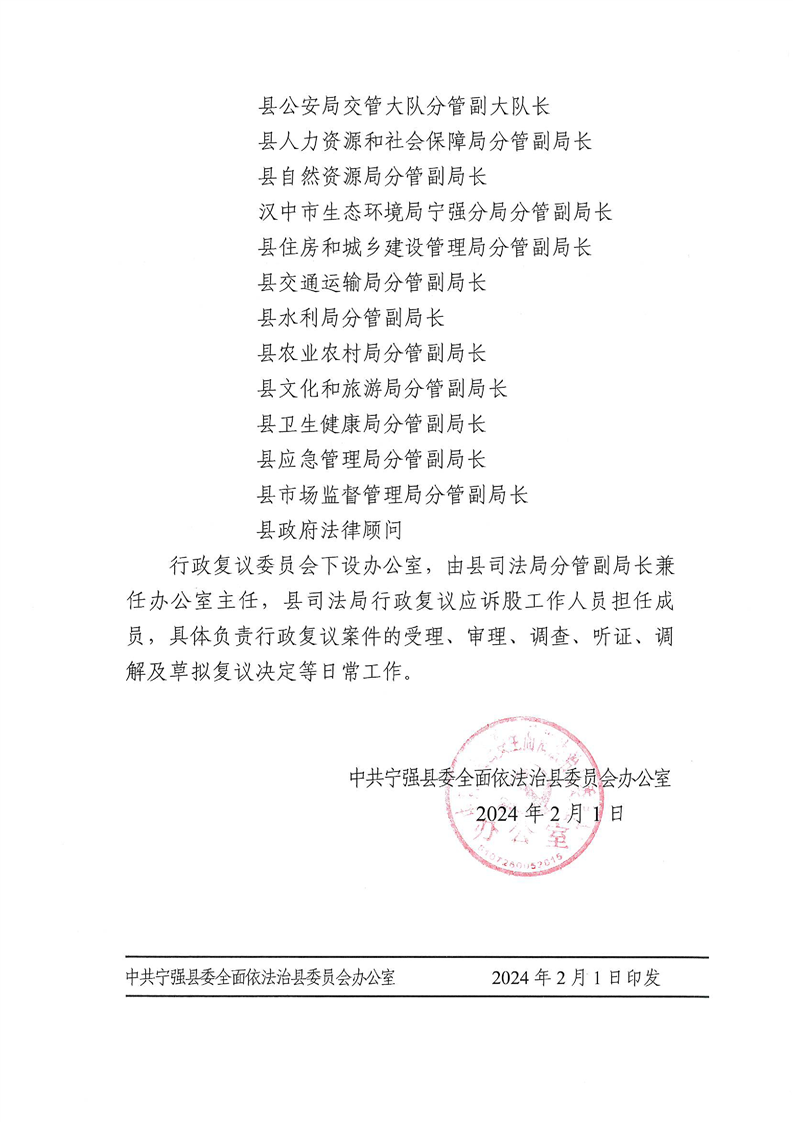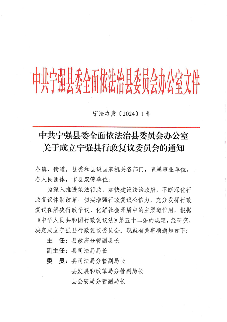 中共寧強(qiáng)縣委全面依法治縣委員會(huì)辦公室關(guān)于成立寧強(qiáng)縣行政復(fù)議委員會(huì)的通知