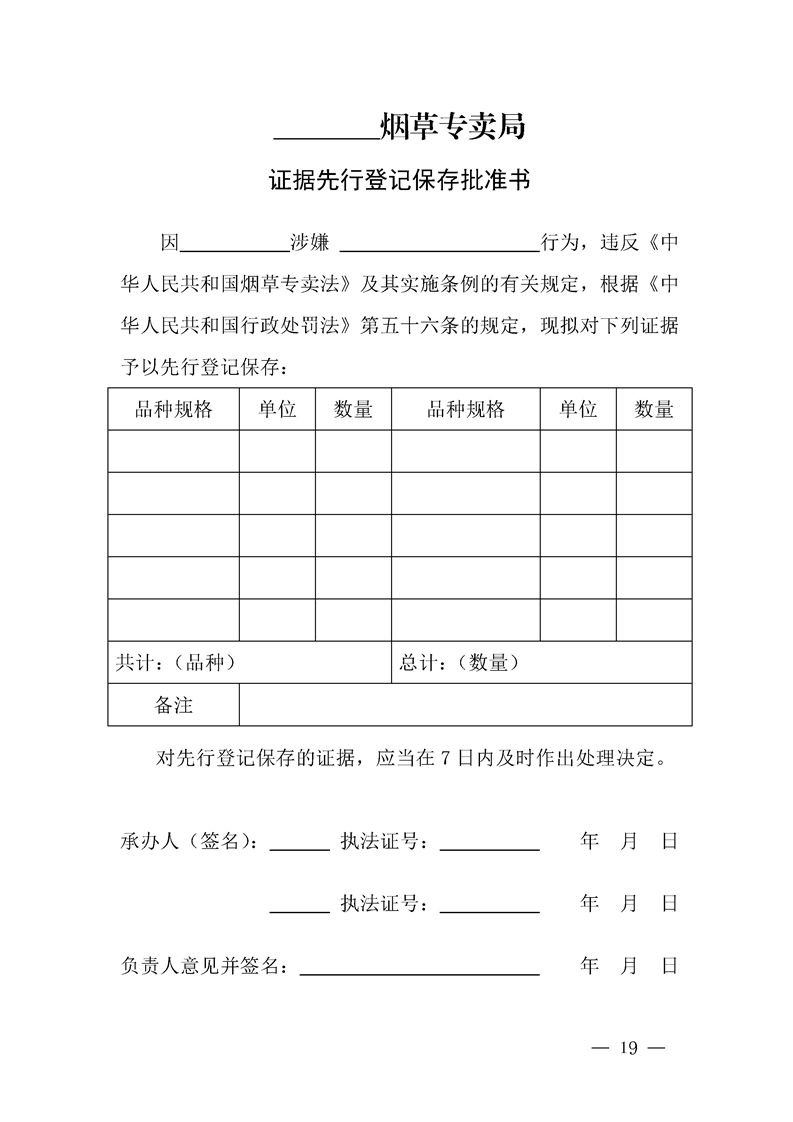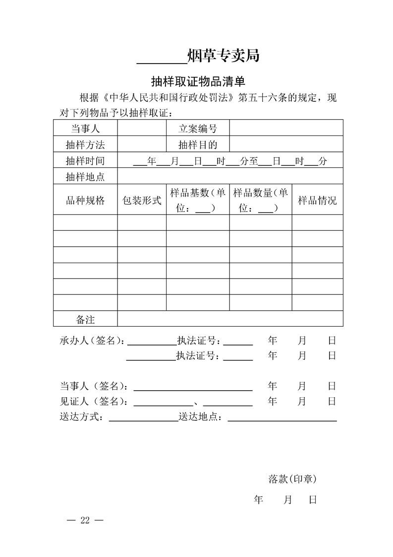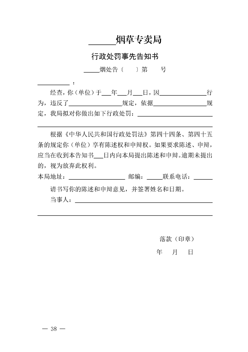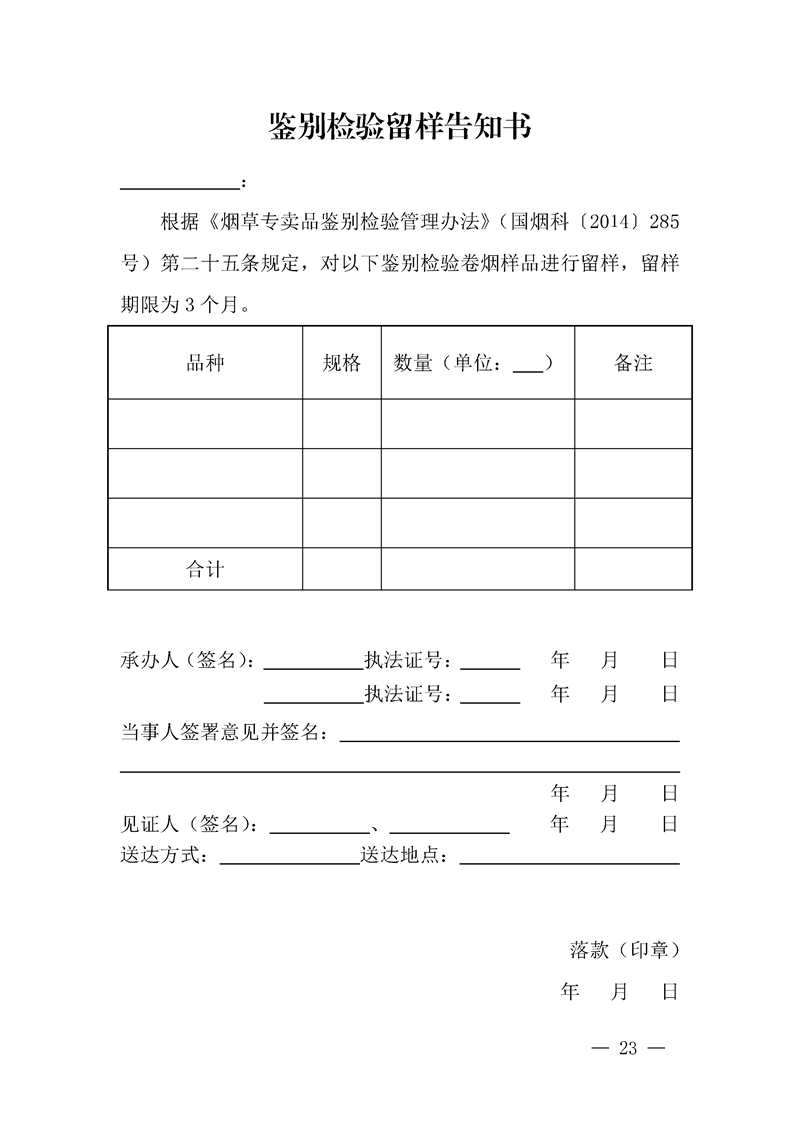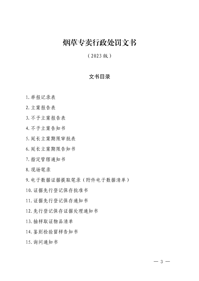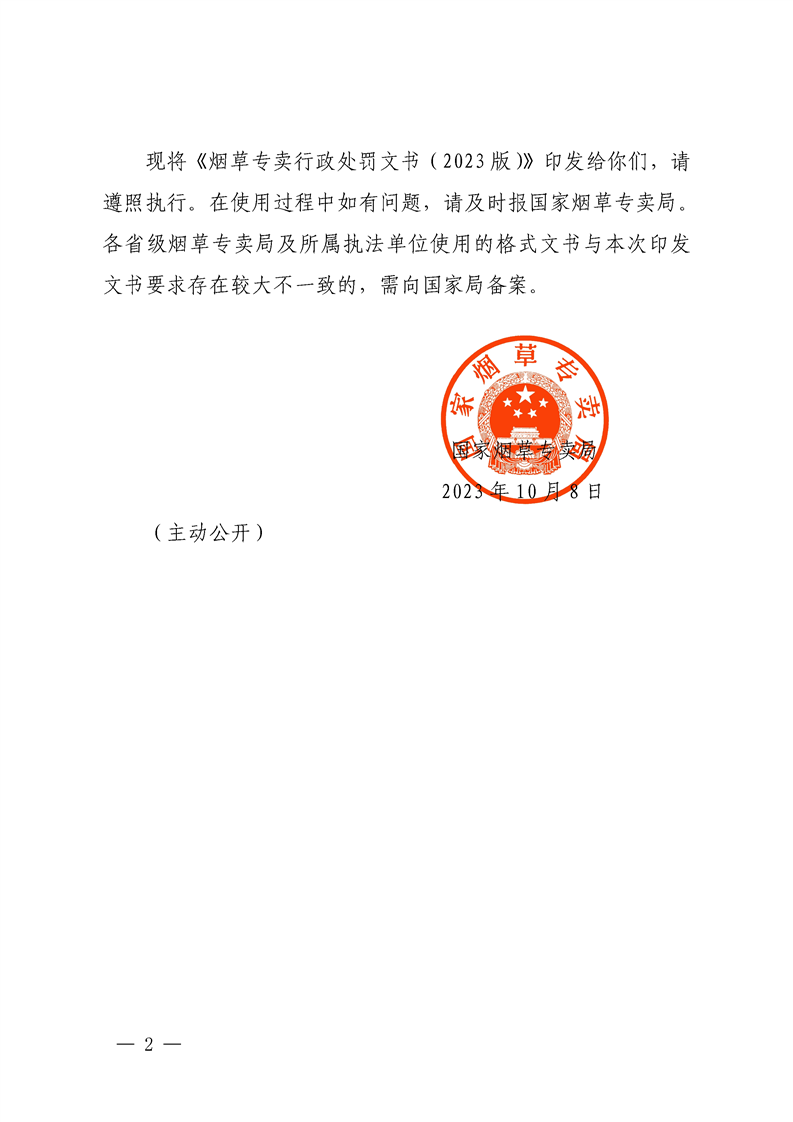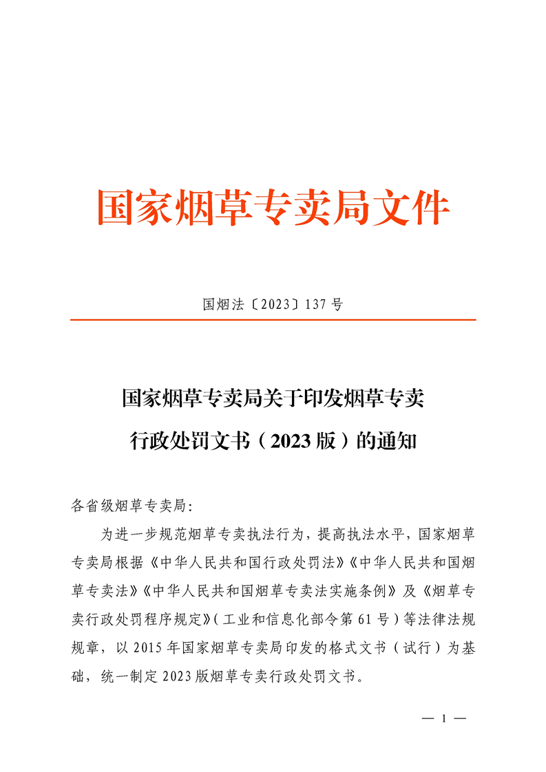 國家煙草專賣局關(guān)于印發(fā)煙草專賣行政處罰文書(2023版)的通知