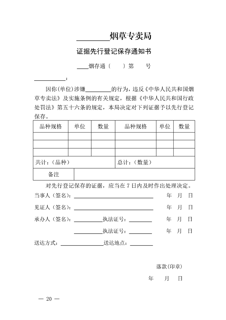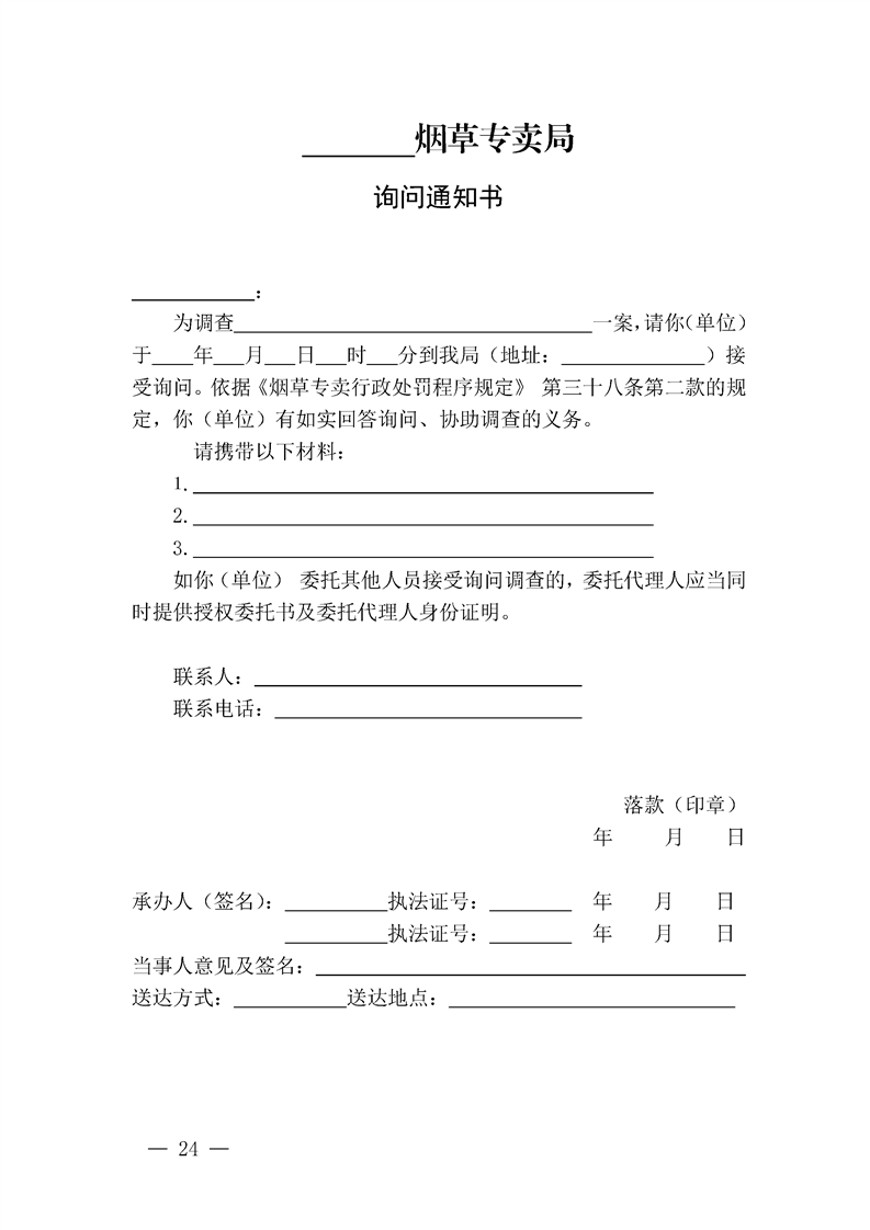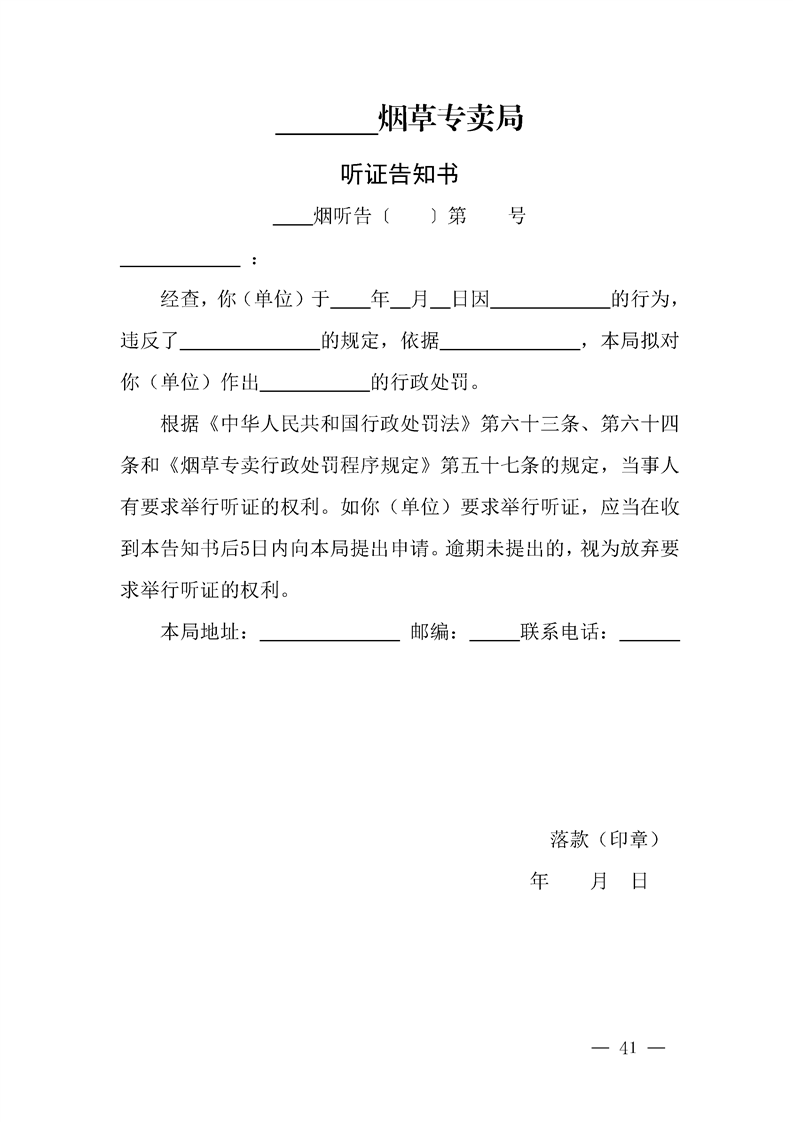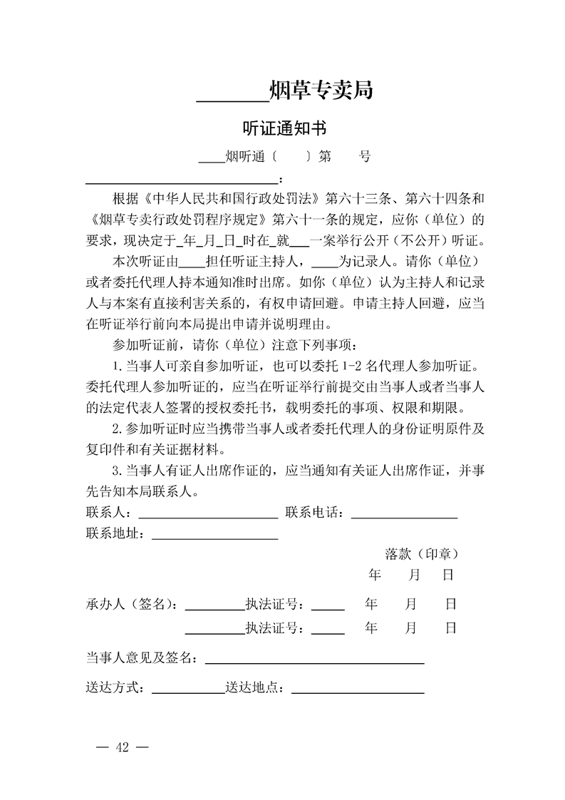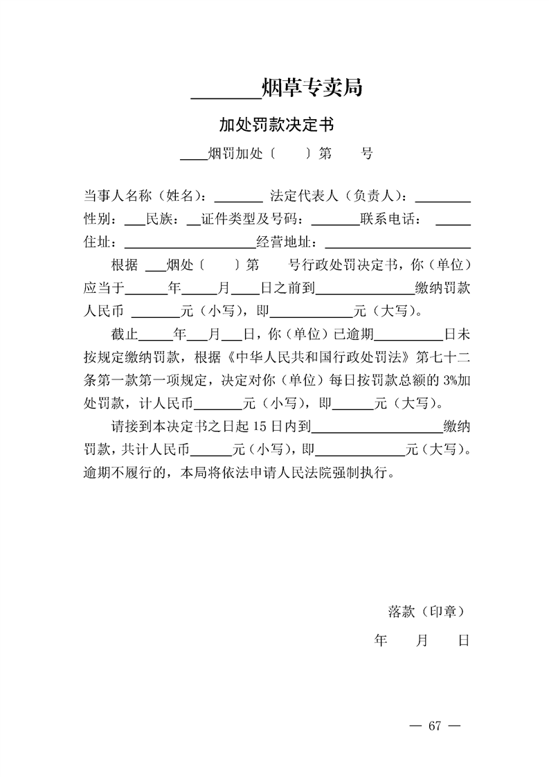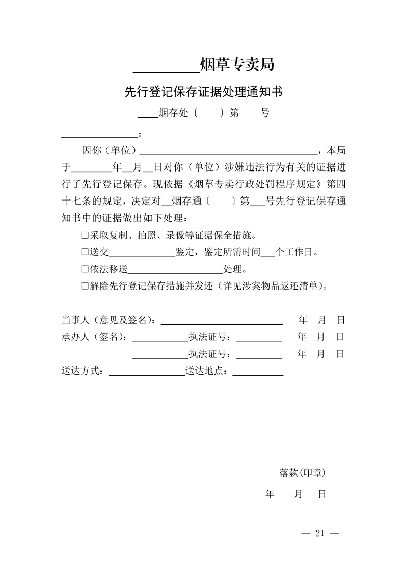 國家煙草專賣局關(guān)于印發(fā)煙草專賣行政處罰文書(2023版)的通知