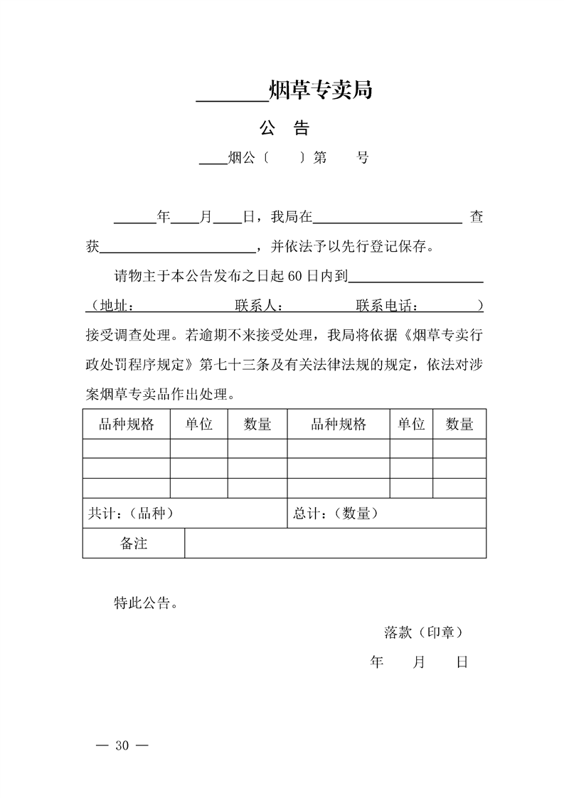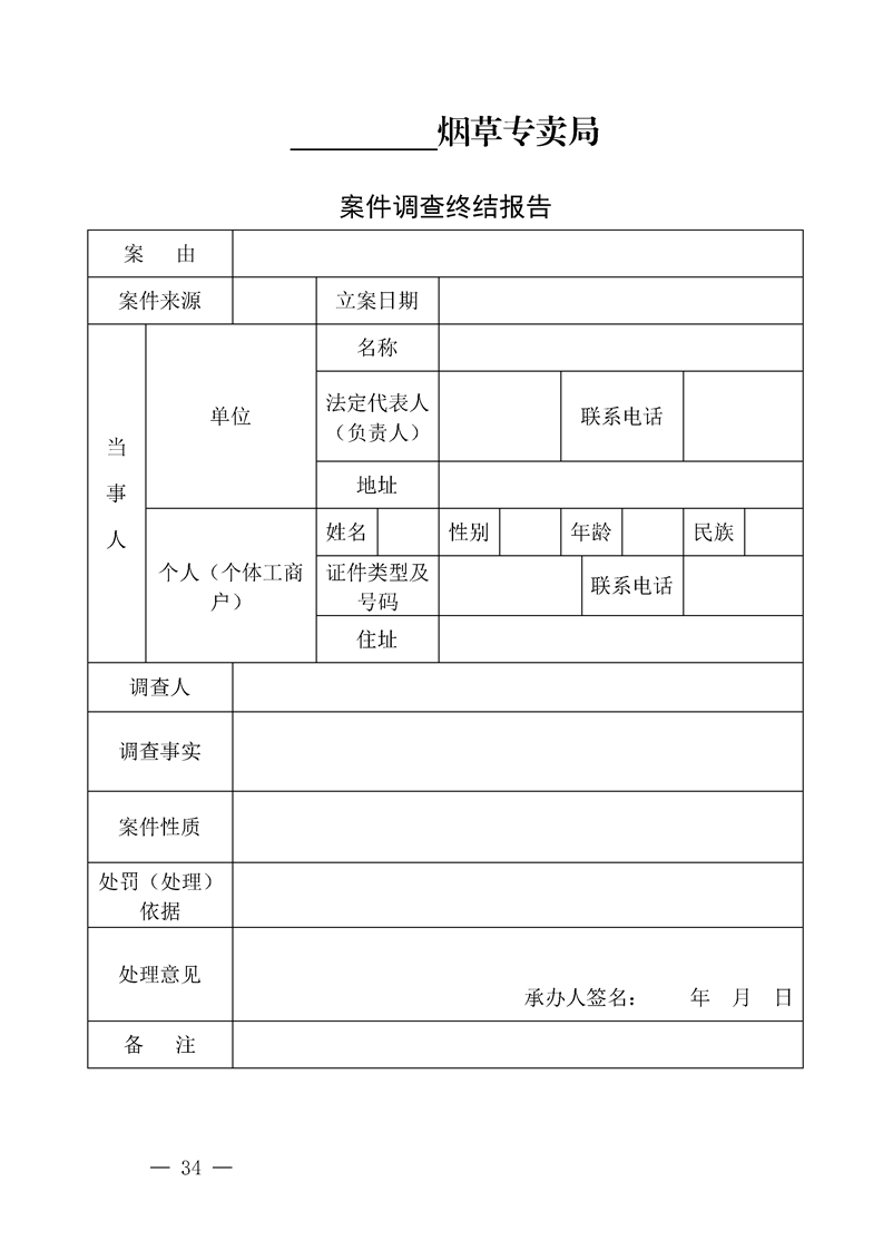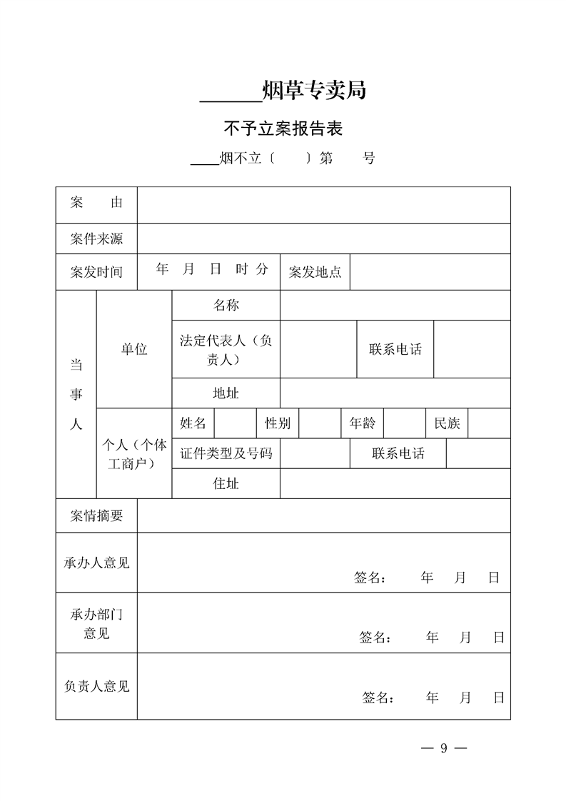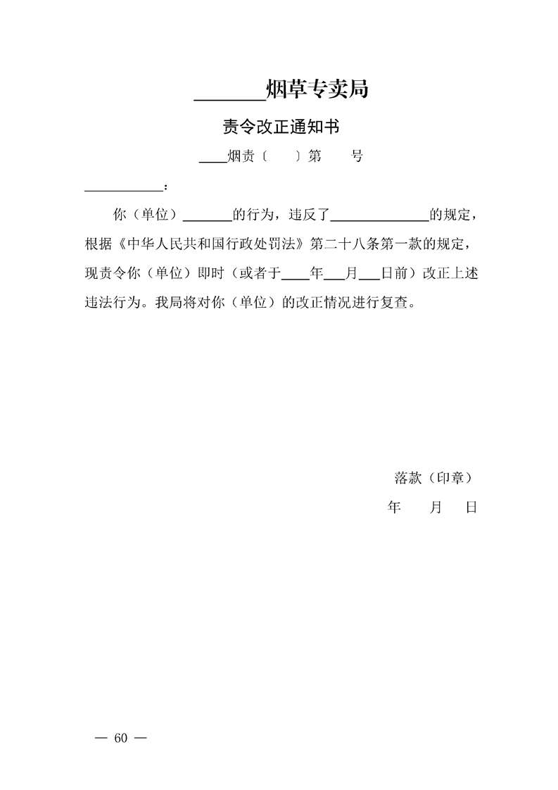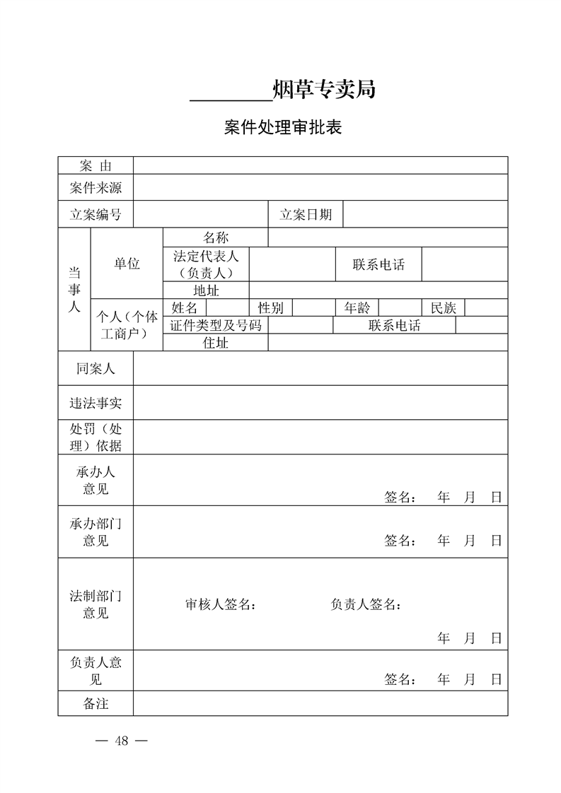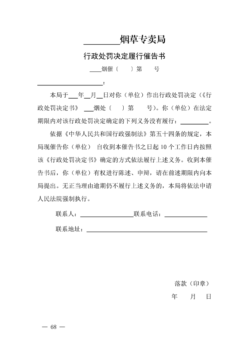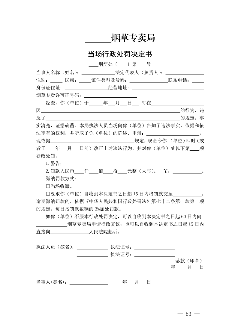 國家煙草專賣局關(guān)于印發(fā)煙草專賣行政處罰文書(2023版)的通知